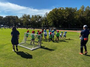 令和7年度は、10月8(水)に韮崎中央公園陸上競技場で開催いたしました。本イベントに長年ご支援をいただいている東京エレクトロン テクノロジーソリューションズ株式会社様から、全参加園児にサッカーボールをプレゼントしていただきました。