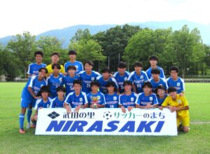 優勝トロフィーが韮崎市サッカー協会の仲沢会長から贈呈されました。